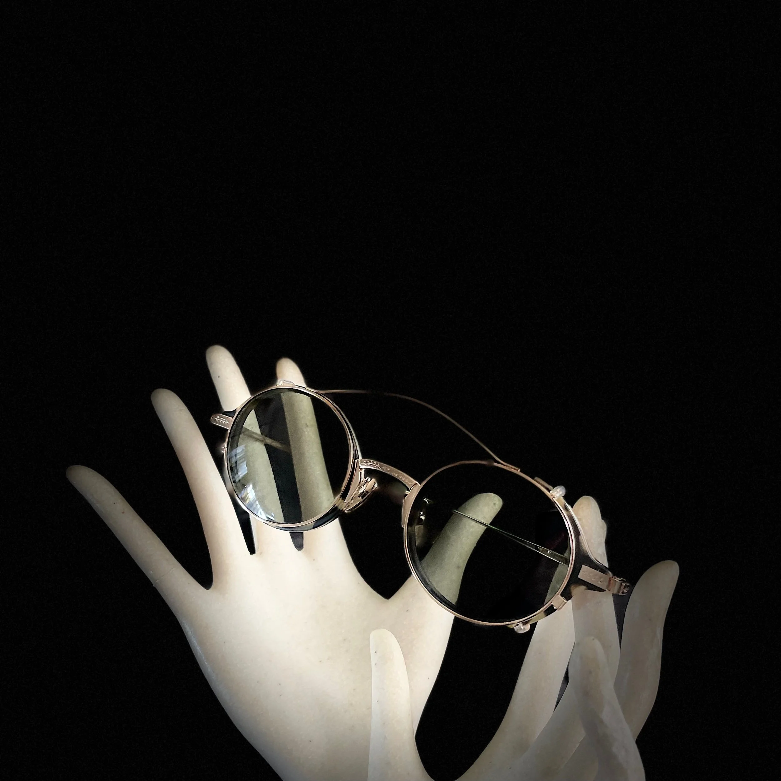 PARADIS COLLECTION is designed by the personality behind collections including Chrome Hearts and Matsuda, Larry Sands. The collection is produced in Japan, with trims that include exotic leathers and 24K gold RGP, Zeiss lenses, and only the very highest-quality materials.